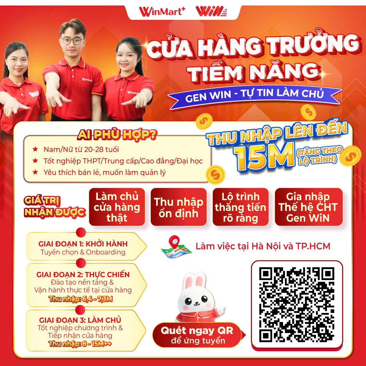 - Địa điểm làm việc: Cửa hàng Win tại TP. Hồ Chí Minh & Hà Nội
