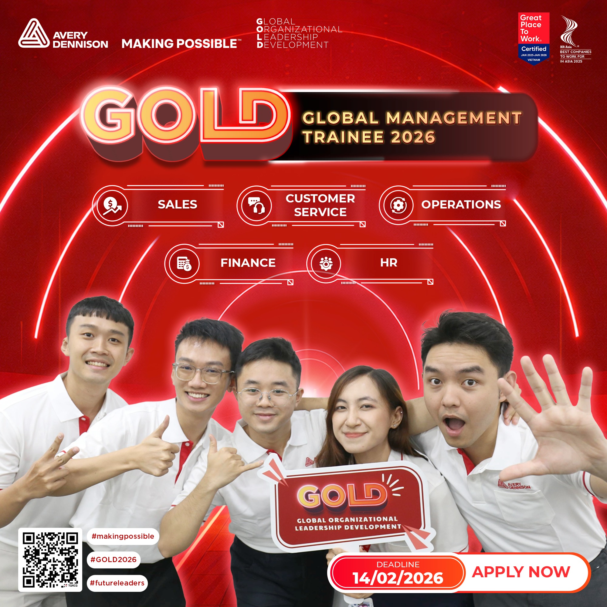 GOLD 2026 là bệ phóng nuôi dưỡng tài năng cho thế hệ lãnh đạo tương lai từ Avery Dennison thông qua lộ trình phát triển toàn diện 24 tháng, được thiết kế cho những bạn trẻ khao khát:
