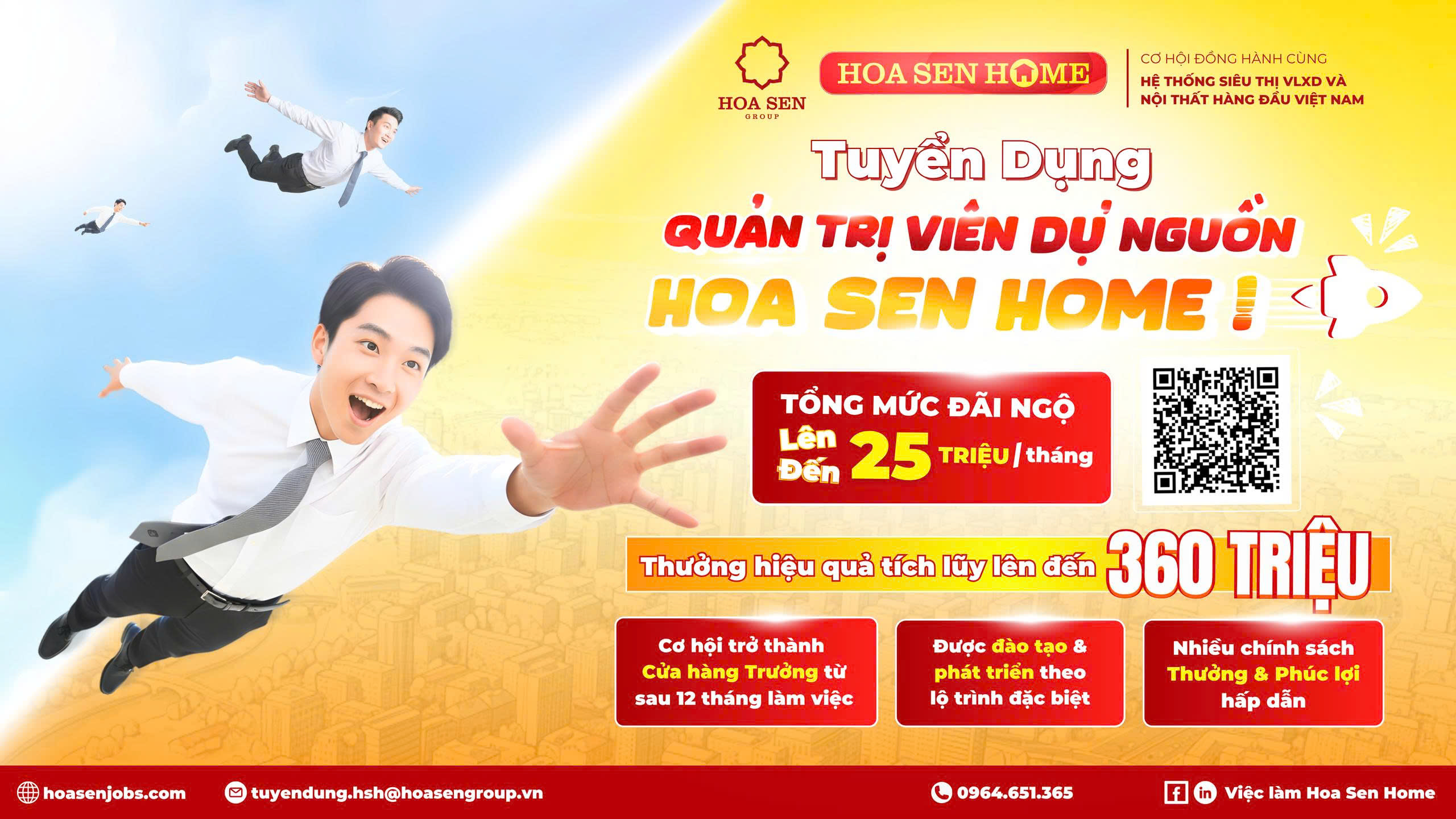 Ứng tuyển ngay chương trình "Quản Trị Viên Dự Nguồn Hoa Sen Home" để khẳng định năng lực - phát triển bản thân - trở thành Cán bộ Quản lý tại Hoa Sen Home và Tập đoàn Hoa Sen.