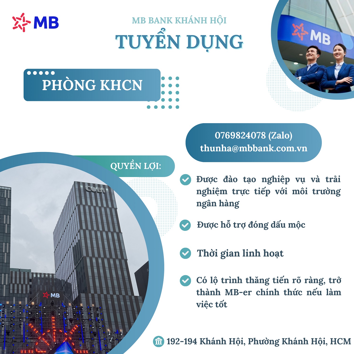 ⁃ Ngoài học hỏi về nghiệp vụ ngân hàng, làm việc tại môi trường năng động chuyên nghiệp.