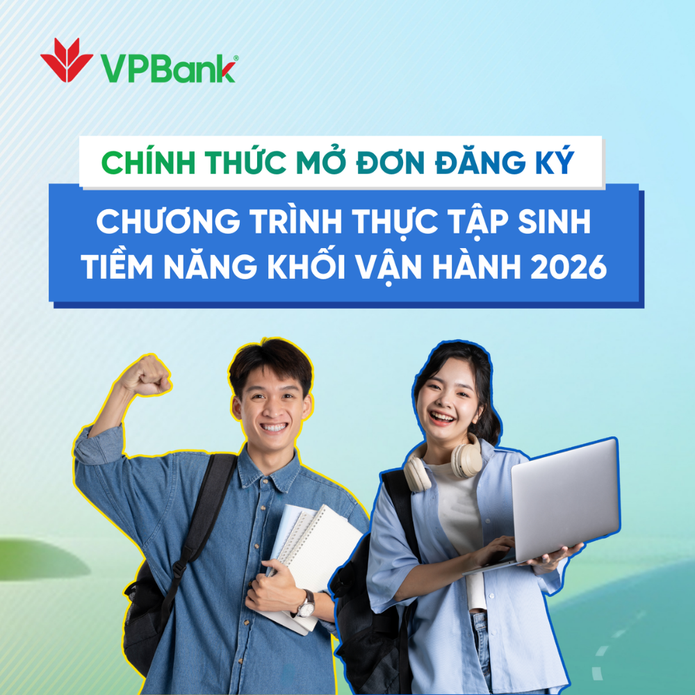 VPBank chính thức mở đơn VPBank Operations Internship Program 2026 – chương trình Thực tập sinh Tiềm năng Khối Vận hành 2026 dành cho sinh viên và cử nhân trẻ mong muốn xây dựng nền tảng nghề nghiệp bài bản, chuyên sâu trong lĩnh vực Tài chính - Ngân hàng.